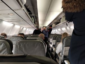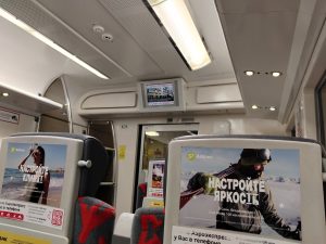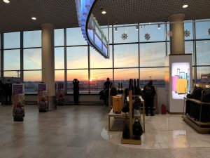 Вылет из Домодедово — кстати, там, вроде, S7 и базируется. Аэроэкспресс не зарубежного производства, а нашего, но со специальным салоном. Далее — рассвет в аэропорту, самолёт и темнота.