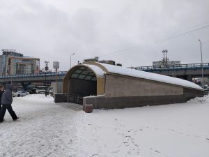 Омское метро уже давно стало мемом, но и на геокешерскую карту тоже нанесено. Место, где была построена единственная станция, сейчас используется как подземный переход с галереей и буквами. Идём дальше в сторону центра.