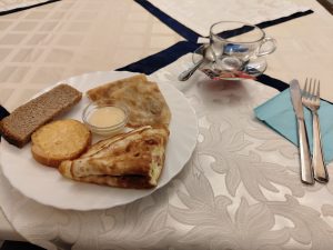 Завтрак был неплохим — поначалу я ходил в комнату для завтраков, а потом уже заказывал в номер, что было весьма непривычно.