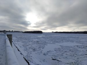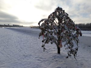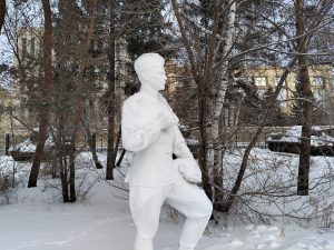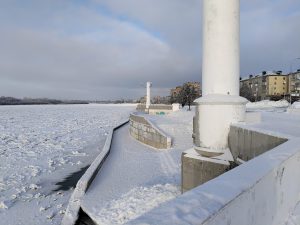 Иртыш находится немного ниже самого города, и туда спускаться было как-то несподручно. Исправляемся. Мёрзнем и исправляемся.